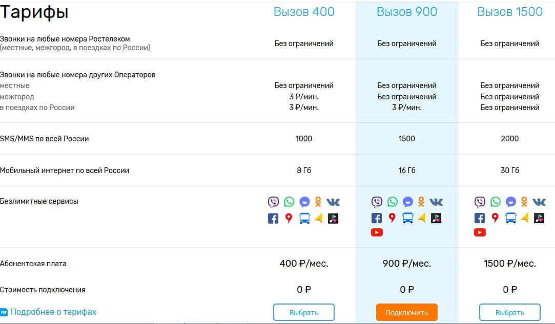 - тариф «Вызов» Ростелеком;