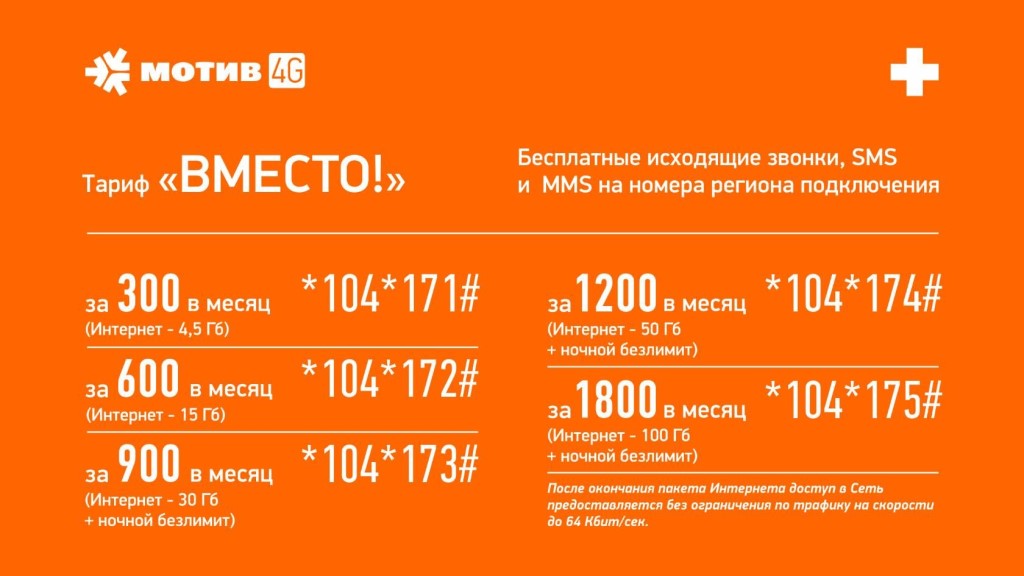 Тарифы сотовой связи Мотив: пакеты «Вместо!», «Вся Россия»